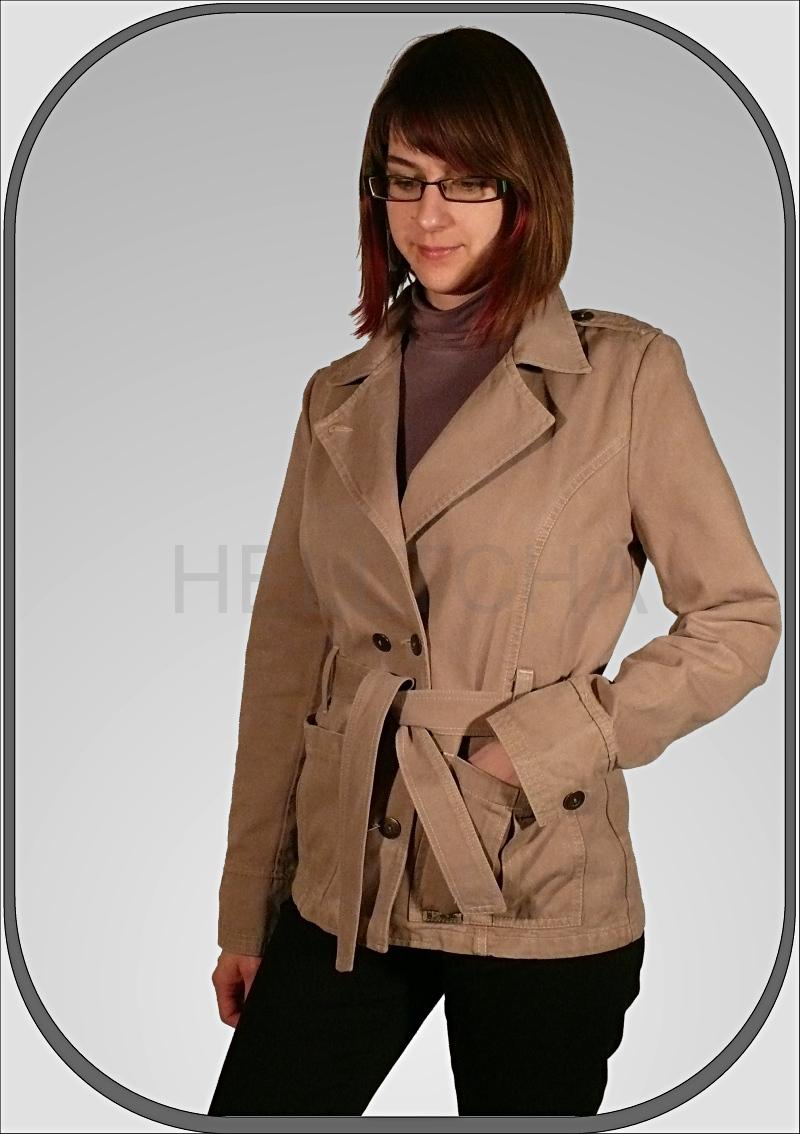 Sako lze stáhnout páskem, který je provléknut poutky.